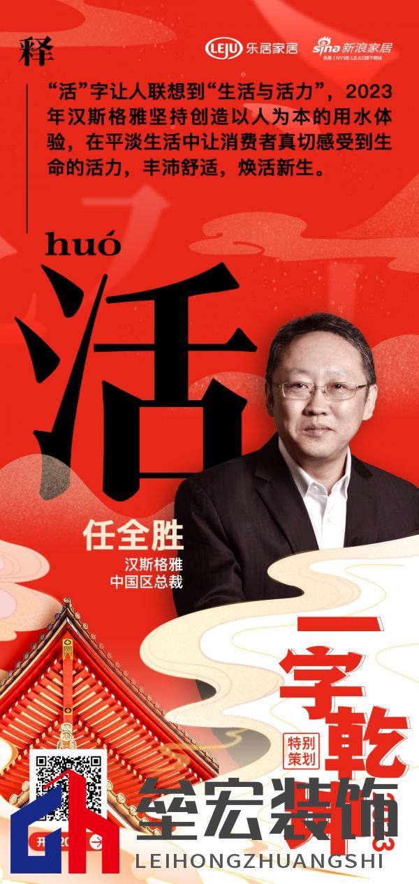 點擊查看活動專題 ??在“2023 一字乾坤”活動中,漢斯格雅中國區(qū)總裁 任全勝用「活」字表達了2023年的規(guī)劃策略及目標:“活”字讓人聯(lián)想到“生活與活力”,2023年漢斯格雅堅持創(chuàng)造以人為本的用水體驗,在平淡生活中讓消費者真切感受到生命的活力,豐沛舒適,煥活新生。 ??“以漢字賦能中國家居企業(yè),彰顯厚積薄發(fā)之力”,近百位家居人以單字抒寫了各家企業(yè)及媒體的新年愿景與發(fā)展信條,共同攜手開啟2023年家居行業(yè)嶄新篇章! ??*注:如有家電領(lǐng)域相關(guān)新聞資訊、好物推薦等信息可發(fā)給我們,同時歡迎各大媒介和家電品牌方關(guān)注微信公眾號“家居情報站”(微信號:home_news),聯(lián)系我們~ |