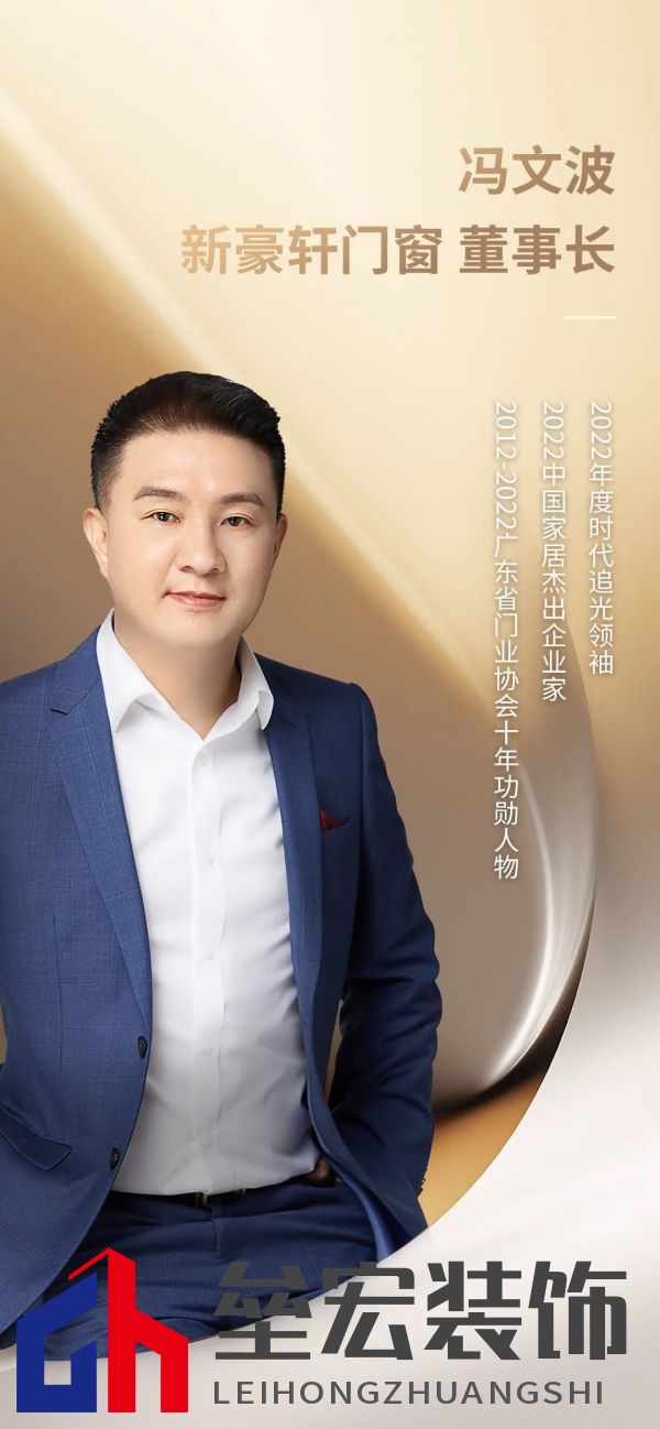??新豪軒門窗董事長 馮文波 ??2022年度時代追光領袖 ??2022中國家居杰出企業(yè)家 ??2012-2022廣東省門業(yè)協(xié)會十年功勛人物 ??作為門窗行業(yè)“新生代”管理者,新豪軒門窗總裁馮佐星擁有創(chuàng)新與活力,運用新思維、新模式打造出門窗“新力量”。他感念并繼承老一輩的經驗作風,從后端到前端,從一線到管理層,將“務實”刻進骨子里,為傳統(tǒng)實業(yè)注入蓬勃向上的發(fā)展新源,以行穩(wěn)致遠詮釋制造實業(yè)高質量發(fā)展的最優(yōu)路徑。