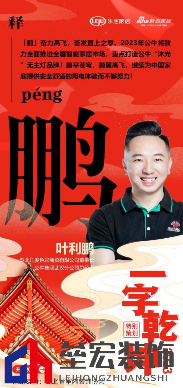 在新浪家居“2023一字乾坤”活動中,湖北幾度色彩商貿(mào)有限公司董事長、公牛集團(tuán)武漢分公司總經(jīng)理葉利鵬:「鵬」奮力高飛,奮發(fā)直上之意。2023年公牛將致力全面推進(jìn)全屋智能家居市場,重點(diǎn)打造公?!般骞狻睙o主燈品牌!鵬舉蒼穹,鵬翼高飛,繼續(xù)為中國家庭提供安全舒適的用電體驗而不懈努力! “以漢字賦能湖北家居企業(yè),彰顯厚積薄發(fā)之力”,以單字抒寫了各家企業(yè)及媒體的新年愿景與發(fā)展信條,領(lǐng)略楚風(fēng)漢韻下湖北家居人砥礪向前,揚(yáng)帆未來的決心與動力,情暖兔歲,新啟華章。 |