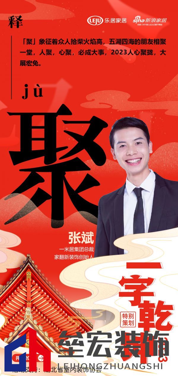 在新浪家居“2023一字乾坤”活動中,一米居集團總裁、家翻新裝飾創(chuàng)始人張斌:「聚」象征著眾人拾柴火焰高,五湖四海的朋友相聚一堂,人聚,心聚,必成大事,2023人心聚攏,大展宏兔。 “以漢字賦能湖北家居企業(yè),彰顯厚積薄發(fā)之力”,以單字抒寫了各家企業(yè)及媒體的新年愿景與發(fā)展信條,領略楚風漢韻下湖北家居人砥礪向前,揚帆未來的決心與動力,情暖兔歲,新啟華章。 |