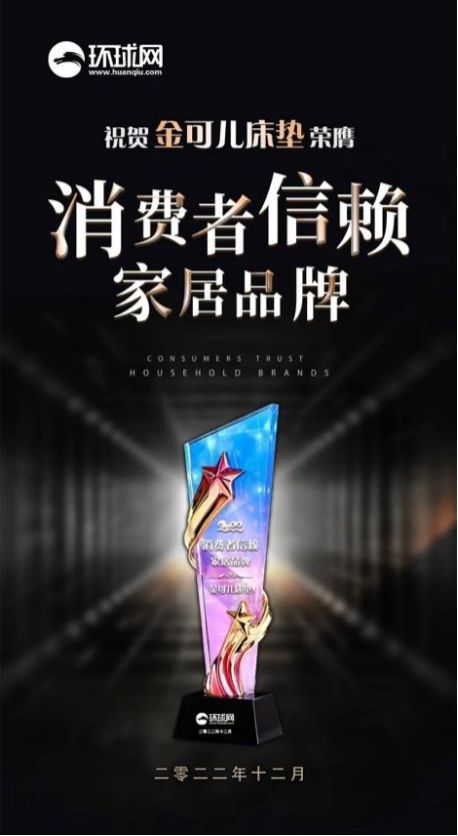 ??除了深耕中高端酒店市場,金可兒在民用品市場上也持續(xù)發(fā)力,以“護脊好睡眠”作為產(chǎn)品設(shè)計理念的多款床墊系列,深受中國消費者的喜愛。在2023年1月3日,由《人民日報》旗下全國重點網(wǎng)站“環(huán)球網(wǎng)”環(huán)球家居主辦的“2022環(huán)球家居甄選”榜單正式公布。作為家居行業(yè)備受關(guān)注的年度獎項之一,該獎項經(jīng)過了為期20天的公開網(wǎng)絡(luò)選票,并經(jīng)過專家考察及綜合評估最終揭曉,KINGKOIL金可兒以高票數(shù)榮膺“消費者信賴家居品牌”殊榮。