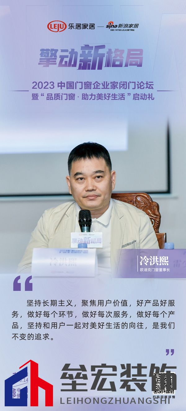 ??歐迪克門窗董事長(zhǎng)冷洪熙:堅(jiān)持長(zhǎng)期主義,聚焦用戶價(jià)值,好產(chǎn)品好服務(wù),做好每個(gè)環(huán)節(jié),做好每次服務(wù),做好每個(gè)產(chǎn)品,堅(jiān)持和用戶一起對(duì)美好生活的向往,是我們不變的追求。 |