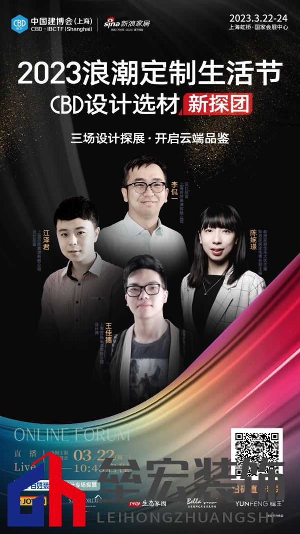 | ??近年來,隨著新生代消費群體消費習慣的變化,一站式場景化消費成為家居裝修主流選擇。原本的零售單品終端也漸漸迎來融合跨界,場景式綜合體驗館的終端消費模式。這其中,裝修公司、設計公司及定制(高定)企業(yè),也成為家居建材通向終端的一大渠道。 ??在此背景下,為迎合當下消費習慣及渠道變革,新浪家居攜手中國建博會(上海)共同打造2023 浪潮定制生活節(jié)啟動儀式暨設計選材季系列活動,通過設計選材驅動整合上下游資源,通過定制品類聯(lián)動高端建材,引領高品質人居生活風向標。 ??3月22日,2023中國建博會(上海)將在虹橋國家會展中心揭開帷幕。新浪家居將攜手九位設計大咖組成2023浪潮定制生活節(jié)CBD設計選材新探團,第一視角與你共看家居空間設計選材新風尚,探索行業(yè)最新動態(tài),歡迎掃碼觀看直播。 ??2023浪潮定制生活節(jié)CBD設計選材新探團第一彈,3月22日10:45啟程!