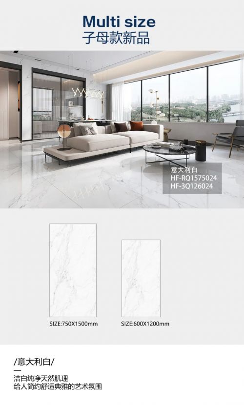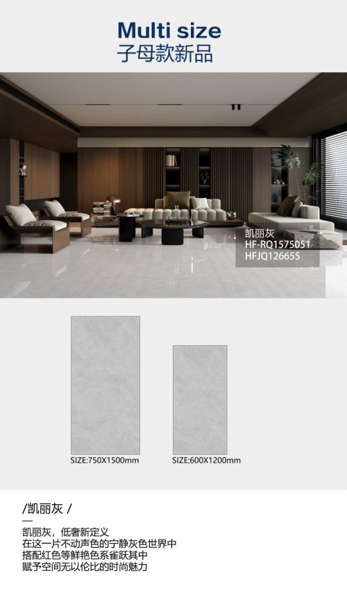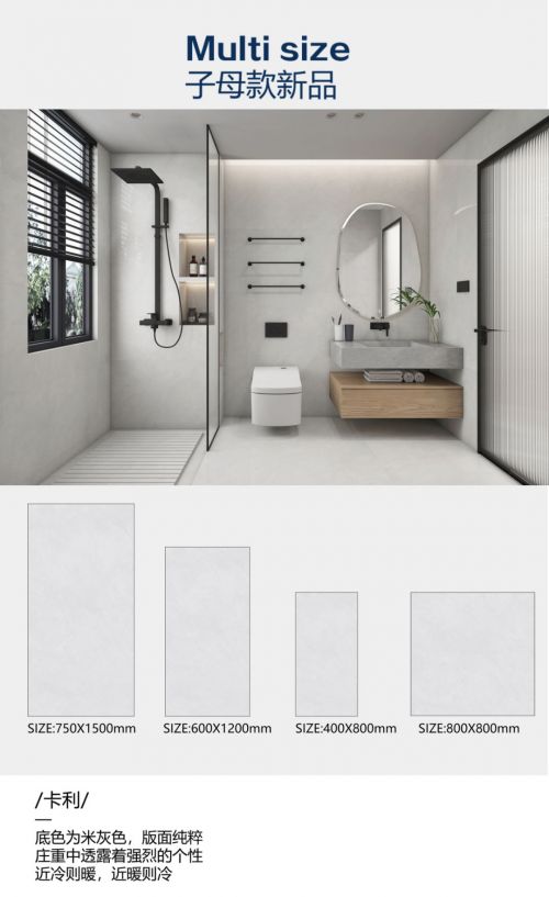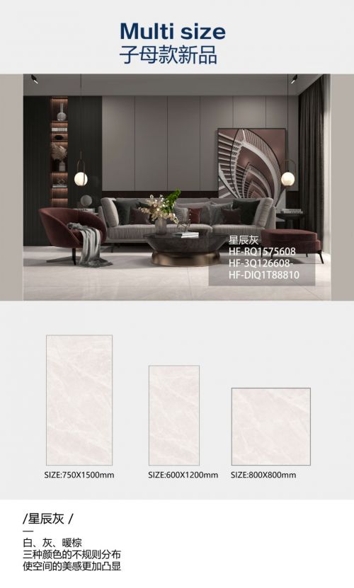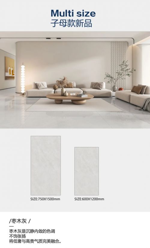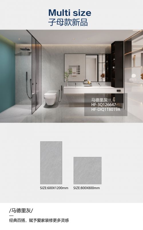 ??子母款新品 ??一磚多尺 · 墻地一體 ??惠萬家瓷磚子母款系列產品,打造多規(guī)格墻地一體化空間。同一款產品配覆蓋750×1500mm、600×1200mm、800×800mm、400×800mm規(guī)格,不同空間不同規(guī)格搭配 , “一款”成就墻地一體,讓設計構思越過界限,滿足更多家庭的需求。
