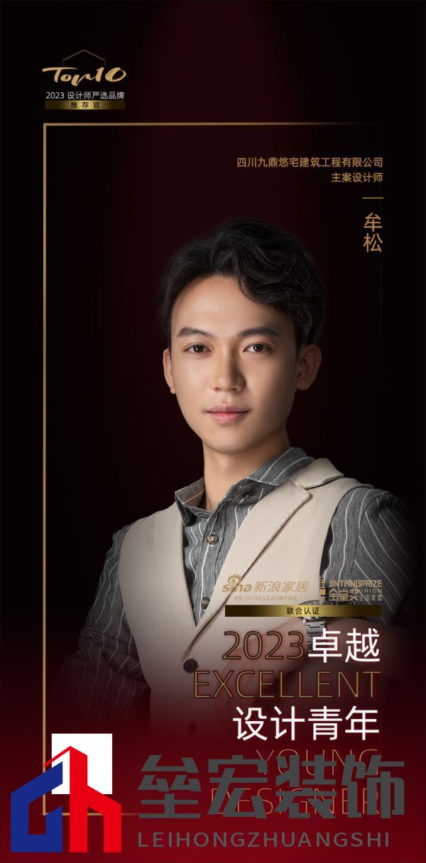 | ??室內(nèi)設(shè)計(jì)是一種創(chuàng)意與藝術(shù)的結(jié)合,設(shè)計(jì)者結(jié)合市場(chǎng)共同趨勢(shì)和藝術(shù)發(fā)展變革,深入探尋人與人、人與空間、空間與自然的和諧關(guān)系。由新浪家居和金堂獎(jiǎng)全國(guó)聯(lián)盟發(fā)起的“2023卓越設(shè)計(jì)青年”,是設(shè)計(jì)業(yè)界最具傳播價(jià)值的年度先鋒榮譽(yù),新浪家居與金堂獎(jiǎng)聯(lián)名認(rèn)證,旨在發(fā)掘和表彰室內(nèi)設(shè)計(jì)領(lǐng)域表現(xiàn)卓越的杰出青年設(shè)計(jì)師。本期四川九鼎悠宅建筑工程有限公司 主案設(shè)計(jì)師牟松榮膺“2023卓越設(shè)計(jì)青年”稱號(hào)。