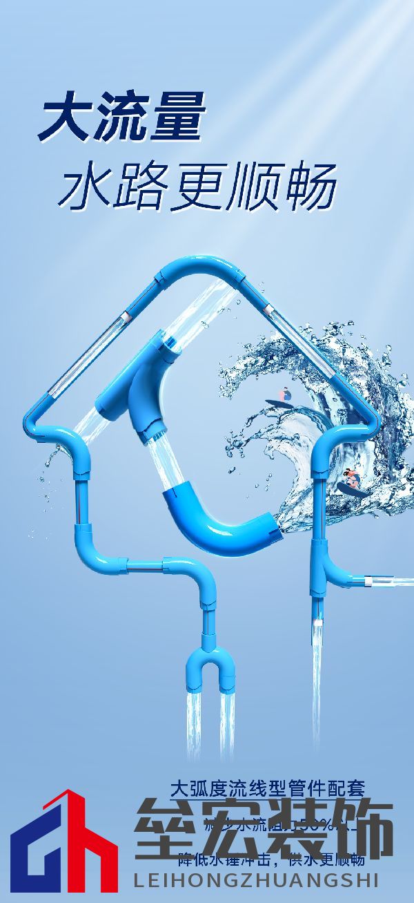 ??大流量水路更順暢 ??聯(lián)塑家裝藍凈瓷芯系列雙色PP-R給水管 ??大弧度流線型管件配套 ??減少水流阻力50%以上 ??降低水錘沖擊,供水更順暢