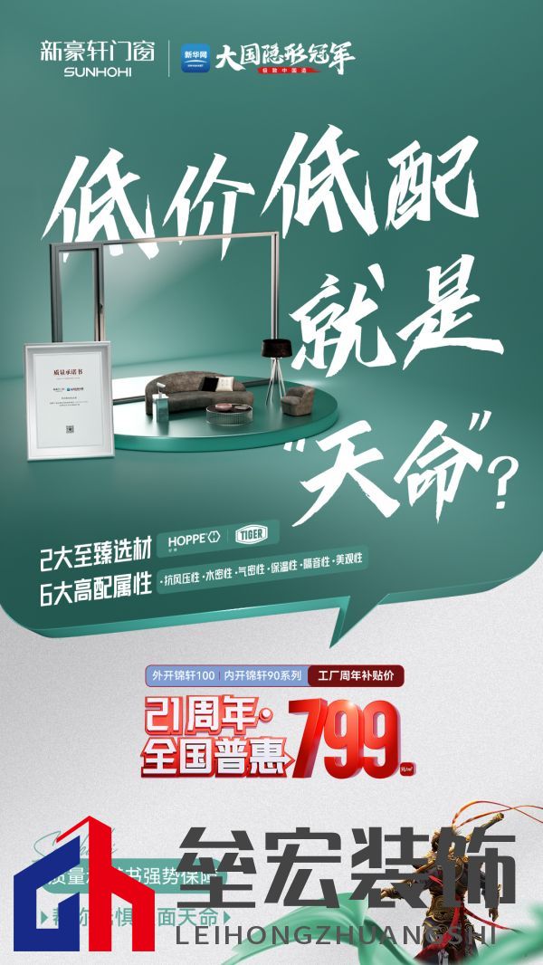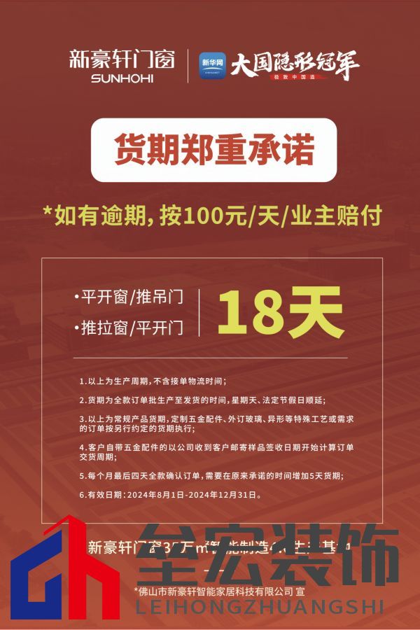 03.智造讓實惠 質效雙保障 品質好窗為何只賣799元?低價產品是否會有好物?不要擔心,新豪軒為你揭曉好窗的鉅惠密碼。 不同于“低價低配”路線,新豪軒開啟“智造讓利”模式。新豪軒背靠亞洲航母級門窗生產基地,采用數智化軟硬件設備 + 精益化高效管理模式,從根本上實現降本增效,形成良性生產循環(huán),從而持續(xù)性地讓利消費者。 在降價不降配同時,新豪軒還用“兩大首發(fā)”消費者提供質效雙保障:獨家首發(fā)的《質量承諾書》圍繞產品用材、性能參數、質保服務等消費者關心的問題作出明確承諾,讓工藝選材透明化、消費保障書面化;行業(yè)首發(fā)的《貨期承諾書》列明系統(tǒng)窗生產周期僅需18天,大大提高了整體交付效率,讓消費者更快用上好門窗。