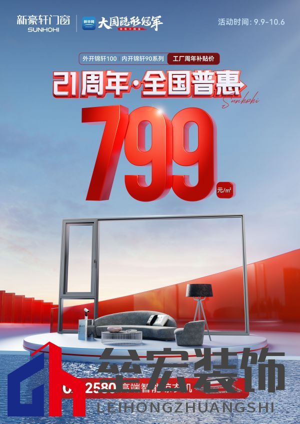 新豪軒21周年慶期間 不僅有799元鉅惠好窗亮相 更有新老客戶專屬福利放送 歡迎前往新豪軒門店咨詢 并鎖定10月6日周年慶直播 下單搶好窗 抽獎贏大禮