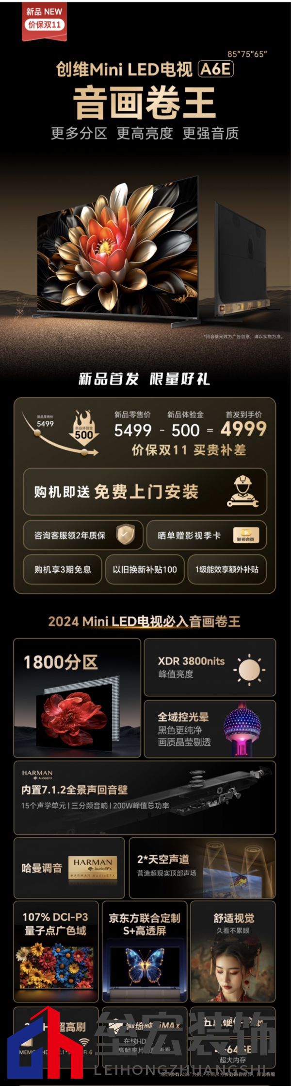 ??如今,創(chuàng)維 Mini LED電視A6E已經(jīng)蓄勢待發(fā),作為市場上獨領風騷的“音畫雙絕”電視產(chǎn)品,創(chuàng)維A6E無疑將成為眾多家庭娛樂愛好者的首選。感興趣的朋友在9月21日開售當日趕快下單,可享免費安裝、延保服務,曬單更有影視季卡相贈。同時,創(chuàng)維提供3期免息支付、以舊換新補貼,助力客戶輕松升級。特別驚喜是,支付尾款還有機會贏取限量PS5或《黑神話·悟空》游戲。詳情請登錄京東、天貓各大電商平臺,搜索產(chǎn)品型號查看開售專屬權益。 |