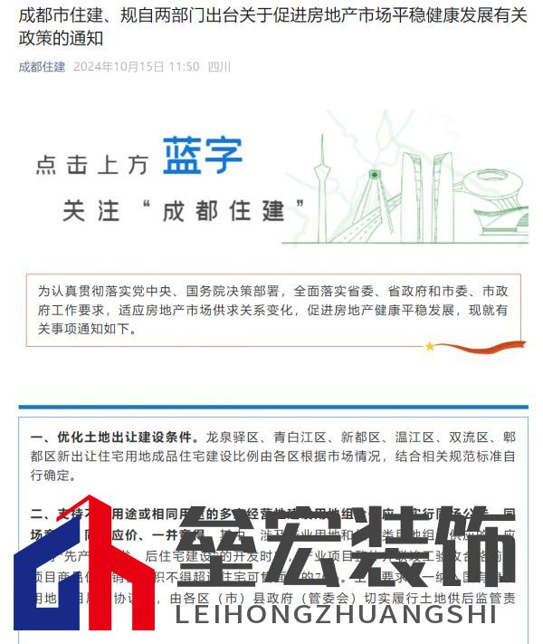 | 10月15日,成都多部門聯(lián)合發(fā)布新政,取消“滿五、滿二”限售規(guī)定,取得《不動(dòng)產(chǎn)權(quán)證書》即可交易;二孩及以上家庭新購(gòu)住房按首套辦理商業(yè)貸款;公積金貸款額度提高至120萬(wàn)元,支持購(gòu)房提取代際互助,取消省內(nèi)異地購(gòu)房提取限制。此舉旨在促進(jìn)房地產(chǎn)市場(chǎng)平穩(wěn)健康發(fā)展。 成都樓市再迎利好消息。 10月15日上午,成都市住房和城鄉(xiāng)建設(shè)局、成都市規(guī)劃和自然資源局、成都市發(fā)展和改革委員會(huì)、成都市公安局、成都住房公積金中心聯(lián)合召開涉及房地產(chǎn)、落戶等方面的政策溝通會(huì)。隨后,“成都住建”和“成都住房公積金”微信公眾號(hào)先后發(fā)布相關(guān)政策調(diào)整的通知。 其中,成都市住建、規(guī)自兩部門出臺(tái)《關(guān)于促進(jìn)房地產(chǎn)市場(chǎng)平穩(wěn)健康發(fā)展有關(guān)政策的通知》(以下簡(jiǎn)稱通知)指出,在成都新購(gòu)商品住房(除定向銷售項(xiàng)目外)和二手住房的,取得《不動(dòng)產(chǎn)權(quán)證書》后即可上市交易。同時(shí),成都市范圍內(nèi),二孩及以上家庭新購(gòu)住房辦理商業(yè)貸款時(shí)均認(rèn)定為購(gòu)買首套住房,支持商業(yè)銀行按照認(rèn)定套數(shù)辦理住房貸款。該政策即日起正式實(shí)施。 成都住房公積金中心印發(fā)通知,對(duì)成都住房公積金貸款和提取政策進(jìn)行了調(diào)整,涉及提高最高貸款額度、支持購(gòu)房提取代際互助、提取支持由租轉(zhuǎn)購(gòu)、取消省內(nèi)異地購(gòu)房提取限制、支持商轉(zhuǎn)公等五項(xiàng)重要支持政策,并自即日起正式實(shí)施。 取消限售,取證即可上市交易 根據(jù)《通知》,成都市范圍內(nèi)新購(gòu)商品住房(除定向銷售項(xiàng)目外)和二手住房的,取得《不動(dòng)產(chǎn)權(quán)證書》后即可上市交易,在此之前已納入再交易管理范圍的住房仍按原政策執(zhí)行。新購(gòu)商品住房以網(wǎng)簽備案時(shí)間為準(zhǔn),新購(gòu)二手住房以不動(dòng)產(chǎn)轉(zhuǎn)移登記登簿時(shí)間為準(zhǔn)。 同時(shí),在成都市范圍內(nèi),二孩及以上家庭新購(gòu)住房辦理商業(yè)貸款時(shí)均認(rèn)定為購(gòu)買首套住房,支持商業(yè)銀行按照認(rèn)定套數(shù)辦理住房貸款。 來(lái)源:成都住建微信公眾號(hào)  《通知》還對(duì)土地出讓政策進(jìn)行了優(yōu)化。 一是優(yōu)化土地出讓建設(shè)條件。龍泉驛區(qū)、青白江區(qū)、新都區(qū)、溫江區(qū)、雙流區(qū)、郫都區(qū)新出讓住宅用地成品住宅建設(shè)比例由各區(qū)根據(jù)市場(chǎng)情況,結(jié)合相關(guān)規(guī)范標(biāo)準(zhǔn)自行確定。 二是支持不同用途或相同用途的多宗經(jīng)營(yíng)性建設(shè)用地組合供應(yīng),實(shí)行同場(chǎng)公告、同場(chǎng)競(jìng)買、同時(shí)應(yīng)價(jià)、一并競(jìng)得。其中,涉及產(chǎn)業(yè)用地和住宅類用地組合供應(yīng)的,應(yīng)堅(jiān)持“先產(chǎn)業(yè)開發(fā)、后住宅建設(shè)”的開發(fā)時(shí)序,產(chǎn)業(yè)項(xiàng)目整體并聯(lián)竣工驗(yàn)收合格前,項(xiàng)目商品住房銷售面積不得超過(guò)住宅可售面積的70%。上述要求統(tǒng)一納入國(guó)有建設(shè)用地項(xiàng)目履約協(xié)議書,由各區(qū)(市)縣政府(管委會(huì))切實(shí)履行土地供后監(jiān)管責(zé)任。 三是優(yōu)化商服用地規(guī)劃布局。支持各區(qū)(市)縣結(jié)合片區(qū)功能開展片區(qū)規(guī)劃論證工作,對(duì)涉及商業(yè)服務(wù)業(yè)用地調(diào)整的,應(yīng)結(jié)合現(xiàn)狀和規(guī)劃商業(yè)服務(wù)業(yè)用地進(jìn)行評(píng)估,綜合分析片區(qū)商業(yè)、商務(wù)用地存量規(guī)模及人均規(guī)劃商業(yè)用地指標(biāo)等情況,從市場(chǎng)需求、規(guī)劃布局、宜居宜業(yè)等方面進(jìn)行論證,在落實(shí)總體結(jié)構(gòu)性要求、滿足公服承載力的前提下,優(yōu)化商業(yè)服務(wù)業(yè)用地規(guī)模和布局。 四是成都市范圍內(nèi)新供應(yīng)經(jīng)營(yíng)性用地,簽訂出讓合同之日起1個(gè)月內(nèi)須繳清全部土地出讓價(jià)款的50%,剩余價(jià)款可按出讓方案要求,在簽訂出讓合同之日起1年以內(nèi)繳清,須按合同約定支付利息。其中,經(jīng)報(bào)自然資源部備案作為低效用地再開發(fā)試點(diǎn)范圍內(nèi)的新供應(yīng)經(jīng)營(yíng)性用地,剩余價(jià)款可按出讓方案要求,在簽訂出讓合同之日起1年內(nèi)繳清,可不計(jì)收利息。 五是成都市范圍內(nèi)新供應(yīng)經(jīng)營(yíng)性建設(shè)用地不再收取項(xiàng)目開發(fā)建設(shè)履約保證金。對(duì)已收取的存量開發(fā)建設(shè)履約保證金,各區(qū)(市)縣政府(管委會(huì))應(yīng)結(jié)合宗地履約情況予以部分退還、全部退還或允許企業(yè)以銀行保函替換。同時(shí),各區(qū)(市)縣政府(管委會(huì))應(yīng)建立企業(yè)項(xiàng)目履約踐諾及信用分級(jí)分類監(jiān)管機(jī)制,將相關(guān)違規(guī)違約行為納入信用檔案管理。 公積金最高貸款額度提至120萬(wàn)元 本次成都住房公積金政策調(diào)整涉及提高最高貸款額度、商轉(zhuǎn)公等五項(xiàng)重要支持政策。 提高最高貸款額度