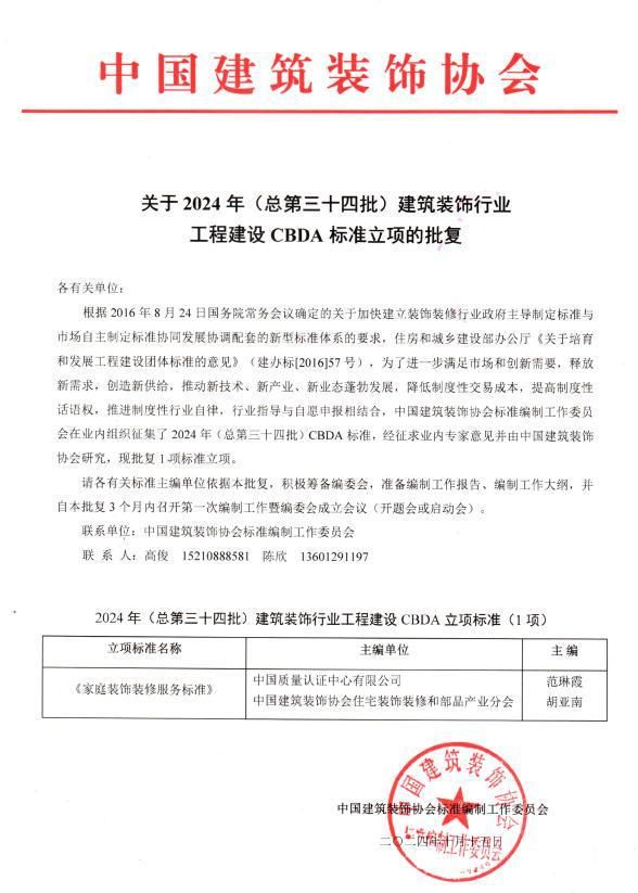 今朝裝飾董事長 戴江平 下半場的家裝行業(yè),需要更新服務(wù)體系,使其適配時(shí)代,適配需求,適配市場。本次T20峰會中裝協(xié)住宅產(chǎn)業(yè)分會宣布由中國消費(fèi)品質(zhì)量安全促進(jìn)會和中國建筑裝飾協(xié)會聯(lián)合立項(xiàng)發(fā)布、由中國質(zhì)量認(rèn)證中心有限公司與中國建筑裝飾協(xié)會住宅裝飾裝修和部品產(chǎn)業(yè)分會具體編制的《家庭裝飾裝修服務(wù)標(biāo)準(zhǔn)》已正式立項(xiàng),并面向全行業(yè)征集參編單位。