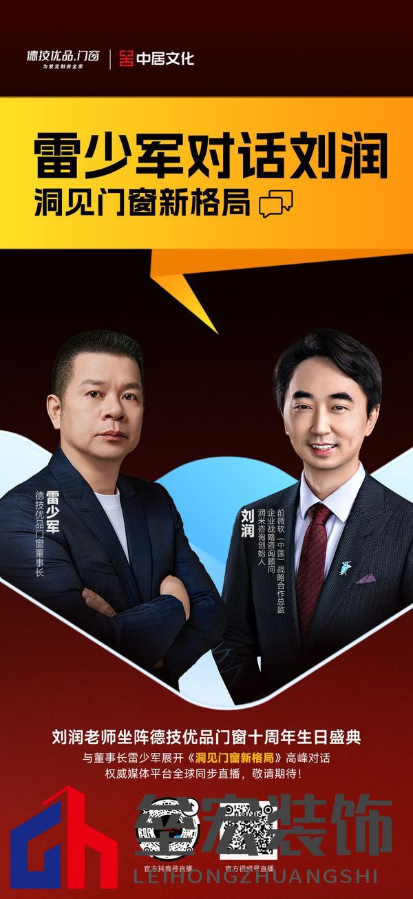 ??2.高峰對(duì)話《洞見門窗新格局》:行業(yè)領(lǐng)袖的思想碰撞 ??德技優(yōu)品特邀潤米咨詢創(chuàng)始人、企業(yè)戰(zhàn)略咨詢顧問、前微軟(中國)戰(zhàn)略合作總監(jiān) 劉潤坐陣十周年慶典現(xiàn)場(chǎng),與雷少軍董事長展開深度對(duì)話!圍繞當(dāng)前的商業(yè)環(huán)境、消費(fèi)趨勢(shì)、品牌出海戰(zhàn)略、AI數(shù)字化轉(zhuǎn)型等議題內(nèi)容,探討行業(yè)大趨勢(shì)風(fēng)向。