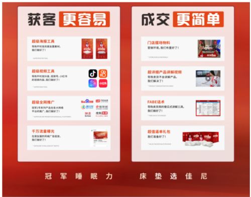 ?全域營銷生態(tài) 破解終端流量困局? 面對線下流量萎縮的行業(yè)痛點,佳尼構(gòu)建"線上引爆+線下承接"的全域營銷體系。 在線上端,總部抖音代運營團(tuán)隊為經(jīng)銷商提供定制化內(nèi)容服務(wù):每月產(chǎn)出30條爆款視頻模板,結(jié)合同城精準(zhǔn)流量扶持,實現(xiàn)單店月度曝光量超500萬次。柳州經(jīng)銷商通過"探店短視頻+直播間滿減券"組合拳,線上引流成交額達(dá)70-90萬/月。長沙宅美家商場數(shù)據(jù)顯示,5款核心床墊產(chǎn)品貢獻(xiàn)90%年度銷售額。更通過"爆品組合包"模式,實現(xiàn)8款床墊、5款軟床、4款沙發(fā)的場景化天津唯尚一品門店年提貨200萬元。