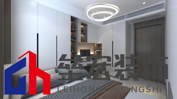 ??小臥室空間不大,設計L型衣柜與書柜連起來,中間為寫字臺,這樣衣物存儲,辦公學習,書及文件的存儲空足夠多,不浪費空間。