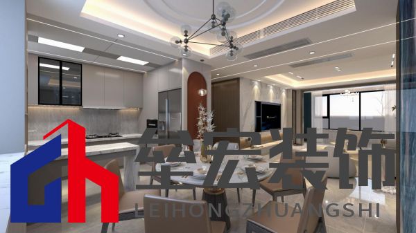 ??廚房為開放式設計,這樣空間更大,廚房與餐廳相接處為吧臺設計,人少時可以在吧臺上吃早點,吧臺也可以作為廚房緩沖的中島臺,廚房做出的飯菜可以通過吧臺過度到餐桌。 ??餐廳為圓桌,南北寬度比東西要大,所以酒柜考慮在北面窗戶處,這樣不會影響圓餐桌的擺放,餐廳背景墻兩側(cè)為護墻板,中間采用大理石奢石,猶如一副抽象畫,高端且優(yōu)雅。