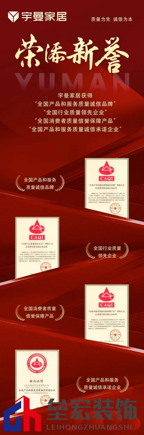 | 質(zhì)量為先,誠信為本。3月15日,在迎來第43個(gè)國際消費(fèi)者權(quán)益日之際,宇曼家居在中國質(zhì)量檢驗(yàn)協(xié)會(huì)開展的“產(chǎn)品和服務(wù)質(zhì)量誠信承諾”主題活動(dòng)中,榮獲“全國消費(fèi)者質(zhì)量信譽(yù)保障產(chǎn)品”、“全國產(chǎn)品和服務(wù)質(zhì)量誠信品牌”、“全國行業(yè)質(zhì)量領(lǐng)先企業(yè)”、“全國產(chǎn)品和服務(wù)質(zhì)量誠信承諾企業(yè)”4項(xiàng)重要殊榮。  中國質(zhì)量檢驗(yàn)協(xié)會(huì)是全國產(chǎn)品質(zhì)量監(jiān)督檢驗(yàn)領(lǐng)域的專業(yè)機(jī)構(gòu),致力于傳遞質(zhì)量信任、引導(dǎo)質(zhì)量消費(fèi),以切實(shí)維護(hù)消費(fèi)者合法權(quán)益。對(duì)于能夠獲得中國質(zhì)量檢驗(yàn)協(xié)會(huì)的認(rèn)可,將賦予宇曼家居在深耕人居美好生活空間領(lǐng)域增添一份驅(qū)動(dòng)力。 01# 質(zhì)量為先 宇曼家居自成立以來,始終把“質(zhì)量為先,誠信為本”的理念融入到生產(chǎn)的每一個(gè)細(xì)節(jié)中,我們嚴(yán)格遵循國際質(zhì)量管理體系,從原材料的選擇到生產(chǎn)工藝的每一個(gè)環(huán)節(jié),都經(jīng)過層層把關(guān)。每一件產(chǎn)品都經(jīng)過嚴(yán)格的檢測(cè),確保高質(zhì)量交付,以品質(zhì)承諾打造消費(fèi)者放心之選。至今,憑借高質(zhì)的生產(chǎn)力和領(lǐng)先的創(chuàng)新力,宇曼家居已發(fā)展成為柜門墻一體化定制品牌,致力于為用戶提供整家一體化空間應(yīng)用解決方案。  02# 服務(wù)至上 宇曼家居堅(jiān)持以客戶為中心,聚焦服務(wù)品質(zhì),優(yōu)化客戶體驗(yàn);為提升客戶滿意度,持續(xù)優(yōu)化服務(wù)模式,搭建線上小程序,客戶可實(shí)時(shí)追蹤訂單進(jìn)度,享受24小時(shí)在線管家服務(wù)。快速響應(yīng)式售后服務(wù),專人跟進(jìn)解決,讓客戶售后無憂;宇曼將服務(wù)系統(tǒng)貫徹到每一個(gè)專賣店,承諾所出售產(chǎn)品均為正品、渠道合法、質(zhì)量可靠,堅(jiān)決杜絕假冒偽劣。并設(shè)有全國監(jiān)督服務(wù)熱線400-6868929,保障每一位用戶買的放心,安的省心、用的舒心。     以榮譽(yù)為鞭策,未來,宇曼始終堅(jiān)持以消費(fèi)者為中心,在強(qiáng)化自身品牌實(shí)力的同時(shí),不斷優(yōu)化產(chǎn)品質(zhì)量,提升終端服務(wù),為消費(fèi)者提供更多優(yōu)質(zhì)的家居解決方案。 來源:宇曼家居 |
