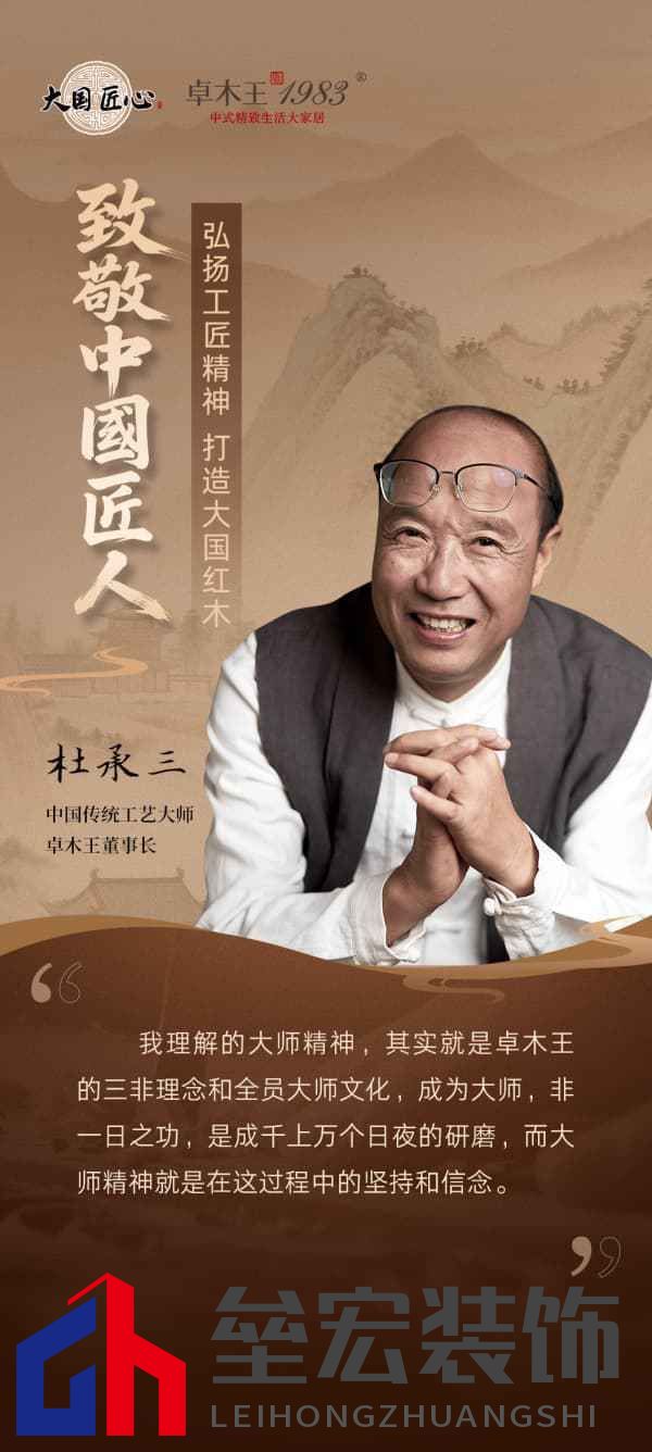 | 五一國際勞動(dòng)節(jié),不僅是對(duì)勞動(dòng)者的贊美,更是對(duì)匠心精神最深情的禮贊。在這個(gè)屬于勞動(dòng)者的節(jié)日里,讓我們走進(jìn)卓木王,感受傳統(tǒng)木藝與現(xiàn)代匠心碰撞出的璀璨光芒。 匠心傳承:大師精神鐫刻悠長時(shí)光 卓木王董事長杜承三大師,十七歲執(zhí)刀木作,五十載深耕東陽木雕,將“非真材實(shí)料不足以取信,非精湛工藝不足以立名,非大師之作不足以傳世”的“三非理念”刻入企業(yè)基因。