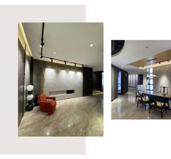 空間賞析 SPACE TO ENJOY 設(shè)計師團隊深度洞察流行趨勢,將最具市場前瞻性的大紋理產(chǎn)品陳列呈現(xiàn)于展廳核心展區(qū),通過專業(yè)燈光設(shè)計與場景化鋪貼,讓每處紋理都成為空間的視覺焦點。