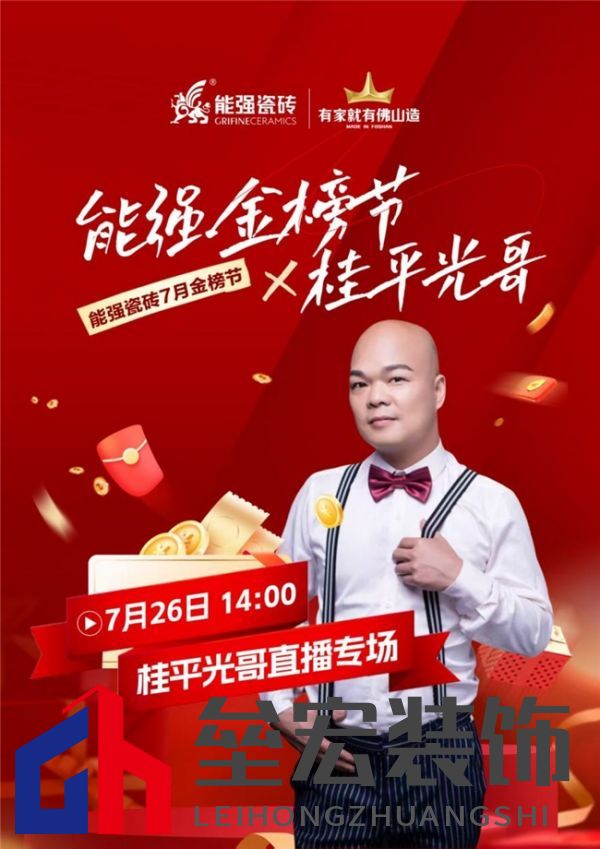 為助力品牌年中大促,能強(qiáng)瓷磚金榜節(jié)全國(guó)聯(lián)動(dòng)特邀知名網(wǎng)紅達(dá)人【桂平光哥】于7月26日下午親臨能強(qiáng)瓷磚總部,開(kāi)啟一場(chǎng)別開(kāi)生面的大型直播活動(dòng)。此次直播通過(guò)趣味互動(dòng)、獨(dú)家福利和沉浸式體驗(yàn),為觀眾帶來(lái)一場(chǎng)視聽(tīng)與產(chǎn)品鉅惠的雙重狂歡。