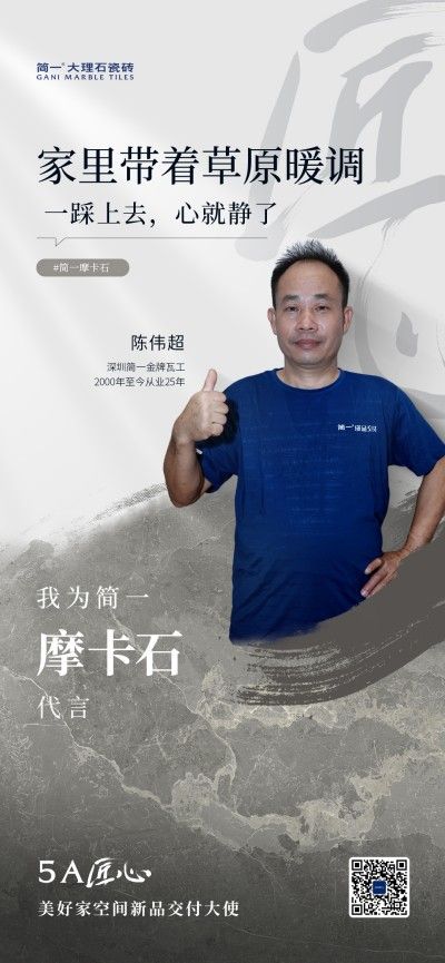 ??從湛江吳川的磚瓦聲到深圳高端住宅的工地上,陳偉超彎腰的姿勢(shì),重復(fù)了25年。2000年入行至今,二十五年的光陰淬煉出他手中“切磚如原片”的絕技。作為5A匠心?美好家空間新品交付大使,他帶著“摩卡石”登場(chǎng),用刀鋒般的精準(zhǔn)詮釋空間的詩意——每一道切割線,都是對(duì)原始肌理的虔誠(chéng)致敬。 ??25年“磨細(xì)”功:把“切口”磨成“原樣” ??在陳偉超的字典里,“細(xì)致”從來不是抽象的詞。在簡(jiǎn)一的4年里,他最自豪的是切出的磚片差不多跟那個(gè)原磚片一樣。比對(duì)紋理走向時(shí),他會(huì)蹲在地上半天不動(dòng),直到確認(rèn)每一刀都順著紋路的自然弧度;調(diào)整角度時(shí),指尖貼著磚邊一點(diǎn)點(diǎn)挪,確保切口平整得能和另一塊嚴(yán)絲合縫。這種較真,讓他切出的磚的縫隙,總能在墻面、地面的轉(zhuǎn)角處“隱形”,仿佛本就該長(zhǎng)在那里。