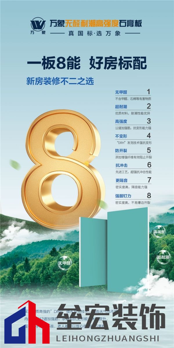 萬(wàn)象無(wú)醛耐潮高強(qiáng)度石膏板,以匠心科技重塑行業(yè)標(biāo)準(zhǔn)。采用輕質(zhì)高強(qiáng)的”DRH”微孔發(fā)泡技術(shù),板芯密實(shí)度高,內(nèi)部添加12道加強(qiáng)筋,縱向斷裂荷載達(dá)到419N,橫向斷裂荷載達(dá)到185N,遠(yuǎn)超國(guó)標(biāo)。同時(shí)擁有無(wú)甲醛、超耐潮、高強(qiáng)度、不變形、防開(kāi)裂、抗沖擊、更隔音、強(qiáng)握釘力8大優(yōu)勢(shì)。將尖端材料科學(xué)與匠心工藝完美融合,為高端住宅、精品商業(yè)空間提供更安全、更穩(wěn)定的裝飾基材解決方案,讓每一寸空間都經(jīng)得起時(shí)間考驗(yàn)。